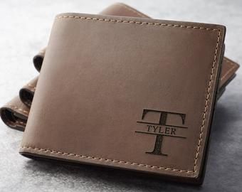 Cartera de piel con grabado láser personalizado.